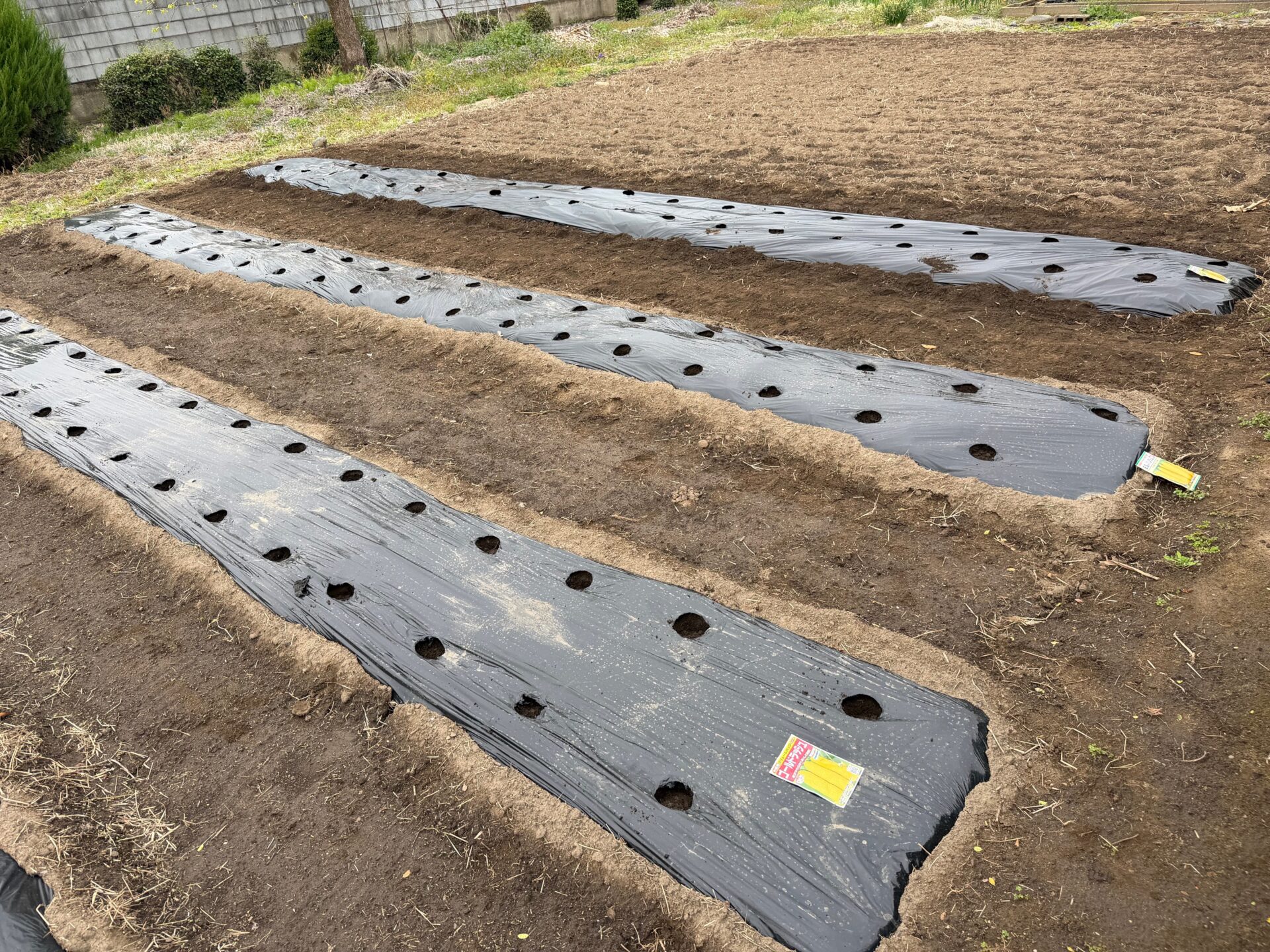 2. 黒マルチに穴あけ