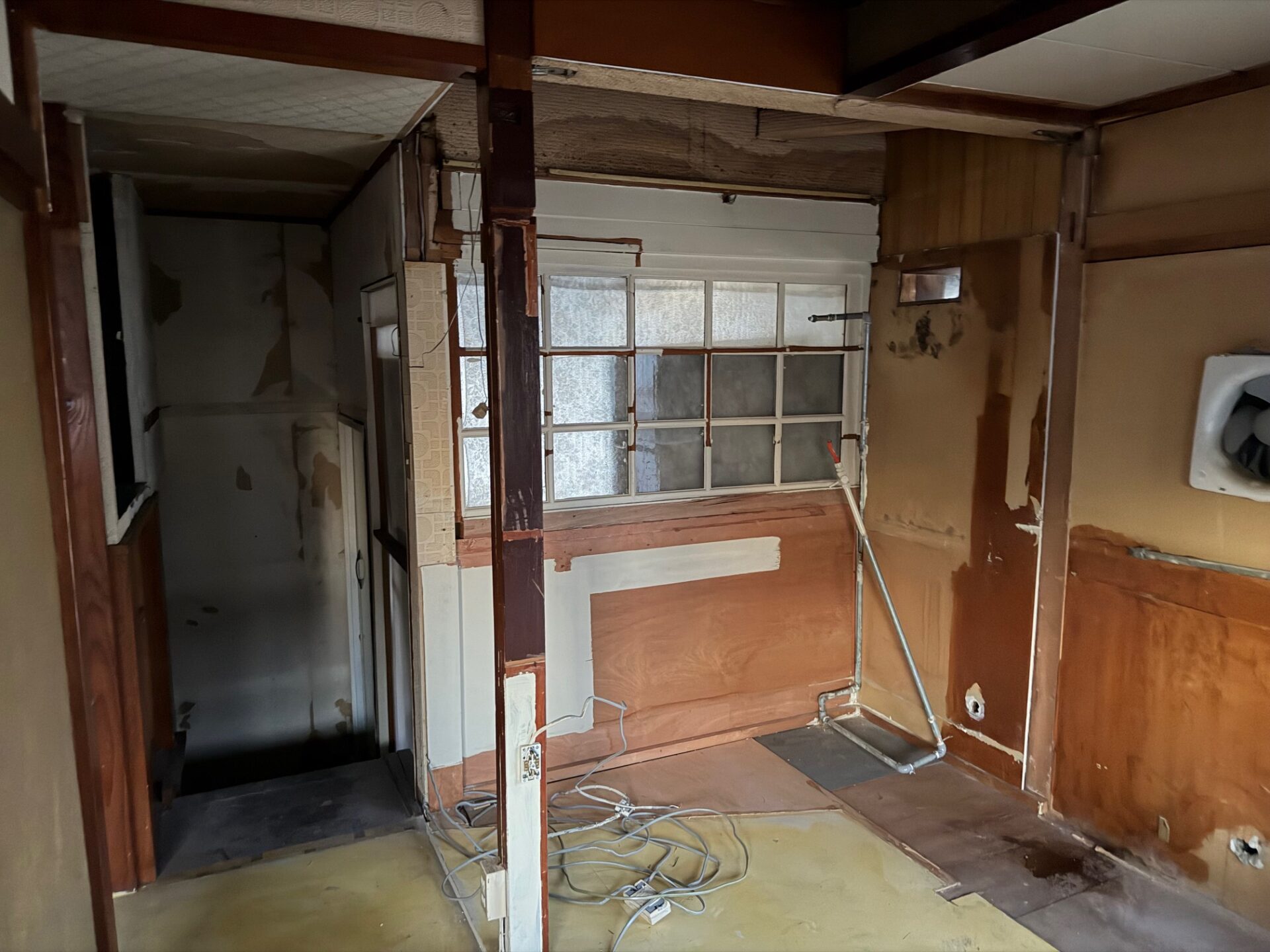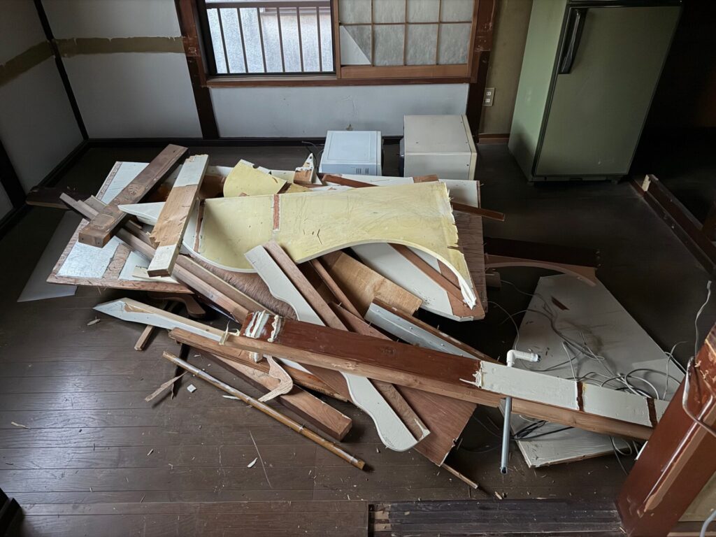 建て付けのテーブルや、後付けで改造された壁の解体からスタートしました。