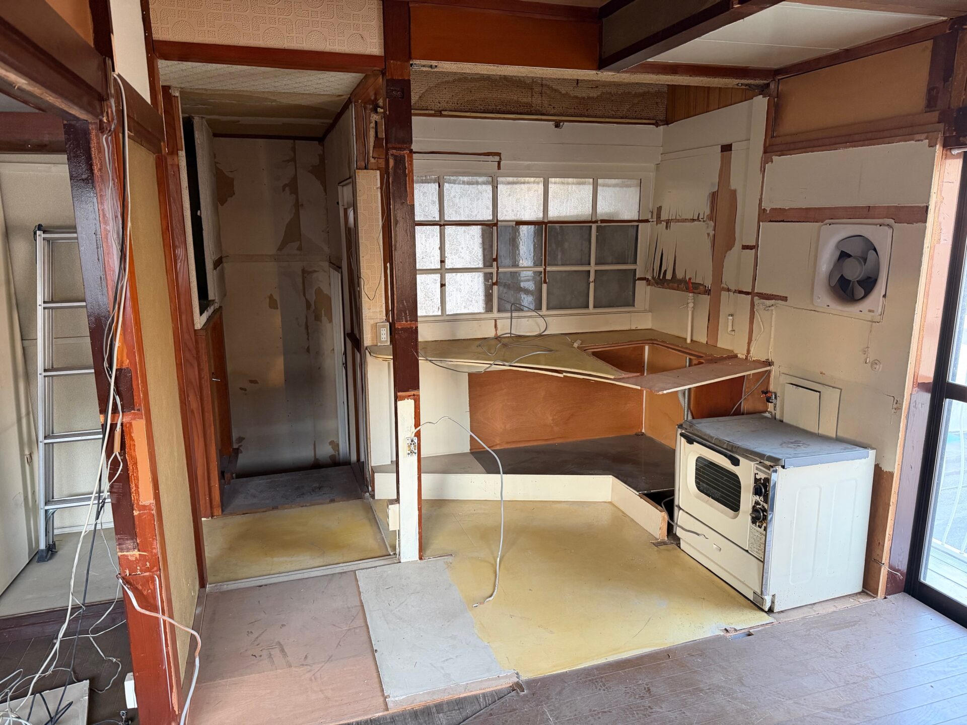 今日は部屋として区切られていた壁を解体しました。