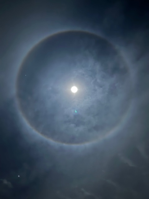 - 結果、月を中心に 円形の光の輪 が見える